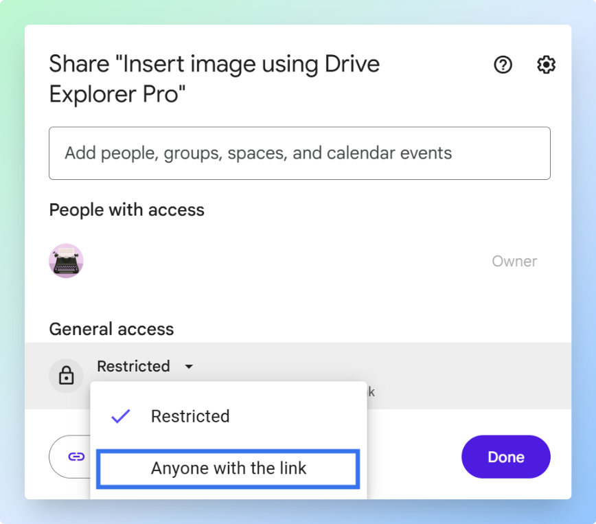- My organization - Anyone in your Google Workspace domain can open the file.