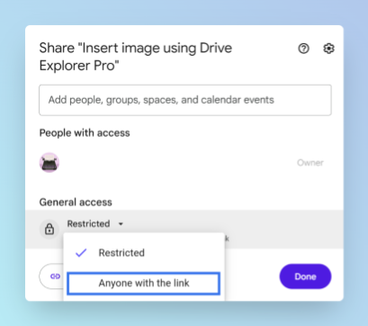 - Under General access, Click the dropdown next to Restricted, then select Anyone with the link to make the file accessible.